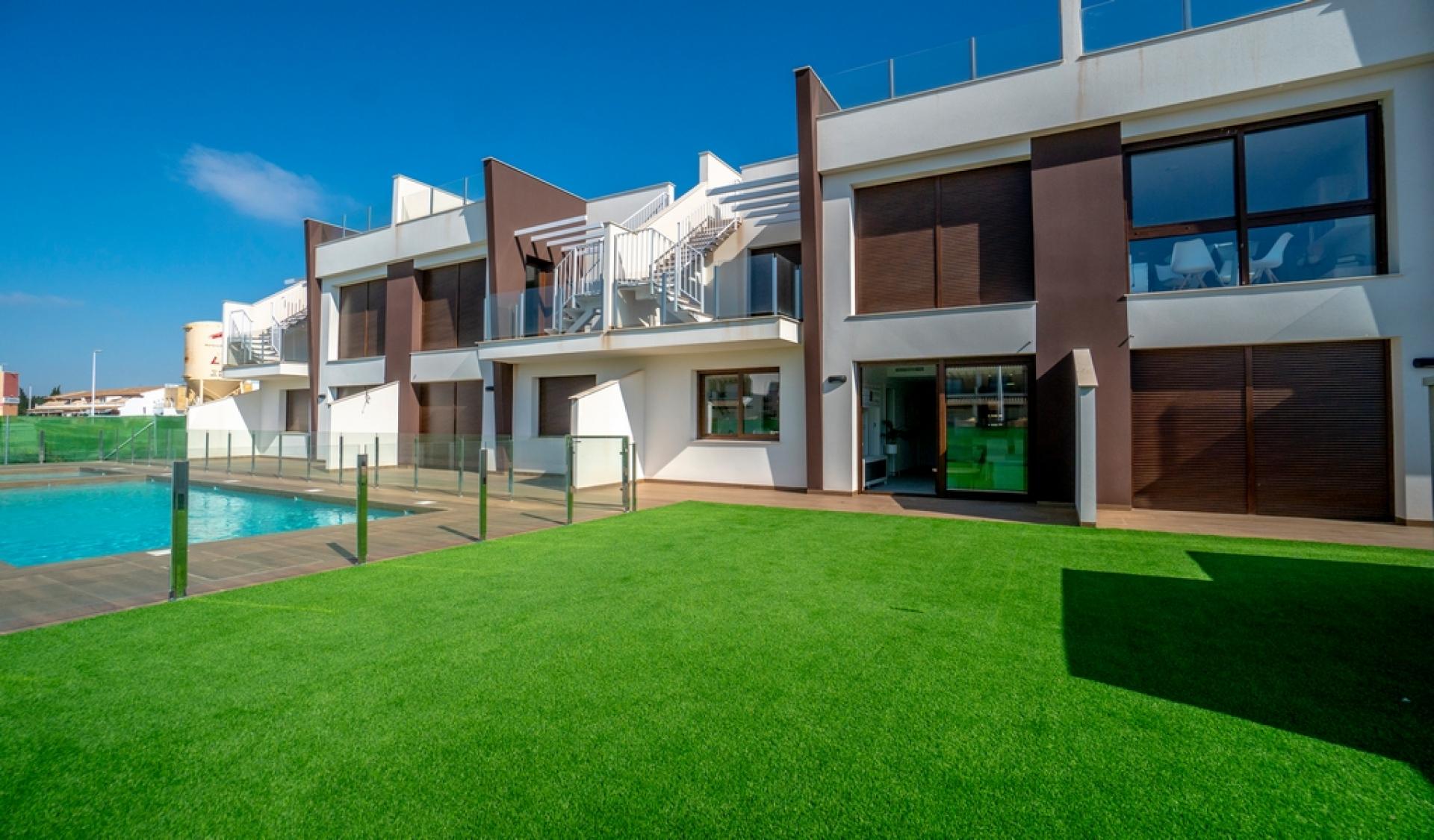 Appartement met tuin gelegen te San Pedro Del Pinatar aan de Costa Cálida (Murcia) in Spanje. Appartement met tuin voorzien van 2 Slaapkamers en 2 Badkamers, gemeenschappelijk zwembad en carport. De residentie heeft huizen op de begane grond met tuin, of boven met solarium. Alle huizen hebben een modern design en herinneren zorgvuldig aan kwaliteiten. Bovendien heeft de woonwijk een prachtige gemeenschappelijke ruimte met tuin en twee gemeenschappelijke zwembaden.
