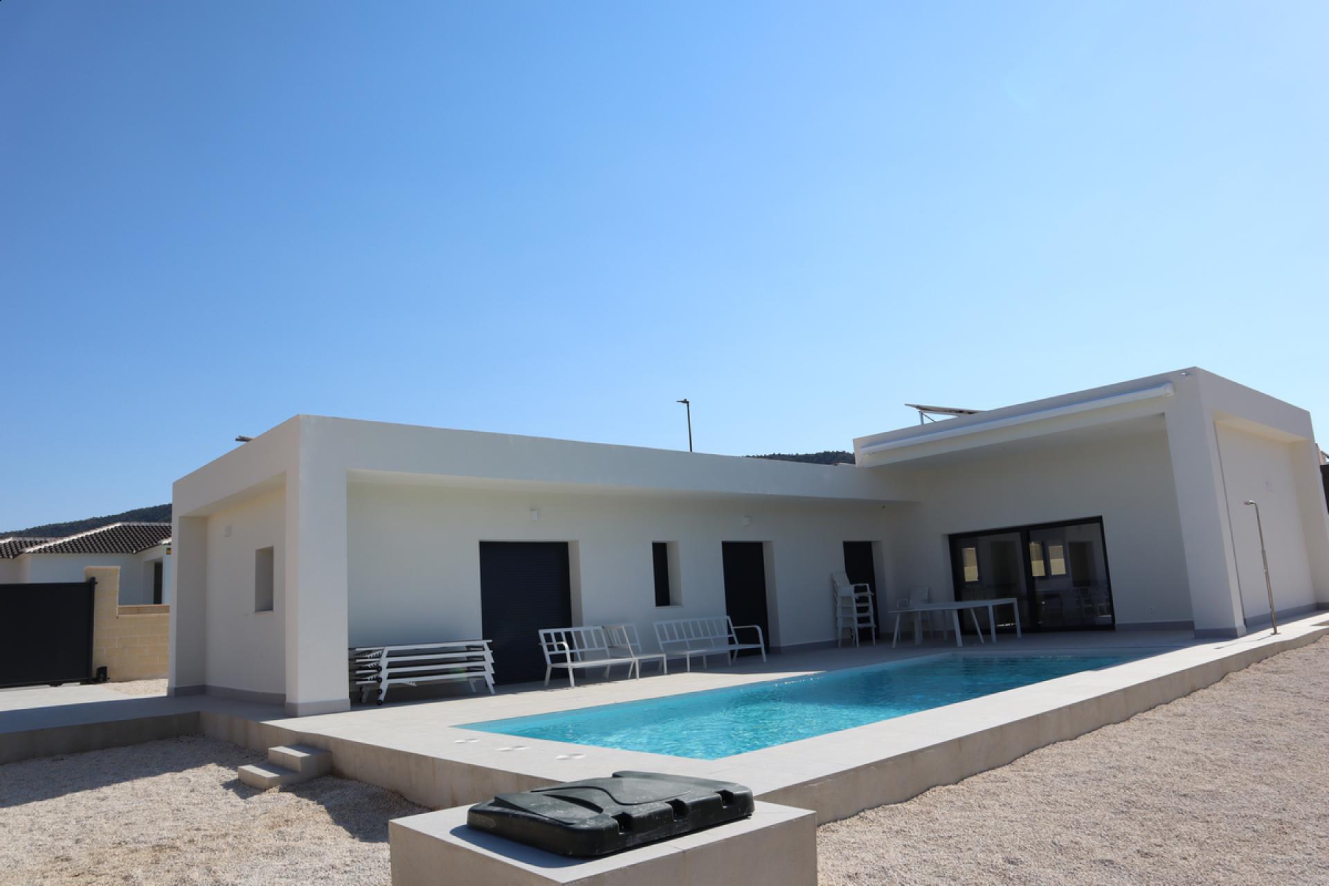 Deze nieuwbouw 3 slaapkamer villa wordt gebouwd volgens de hoogste standaard met een modern design voorzien van veel lichtinval dankzij de drie grote openslaande deuren van de lounge / eetkamer die uitzicht biedt op het zwembad (3,4×8) en tuin.