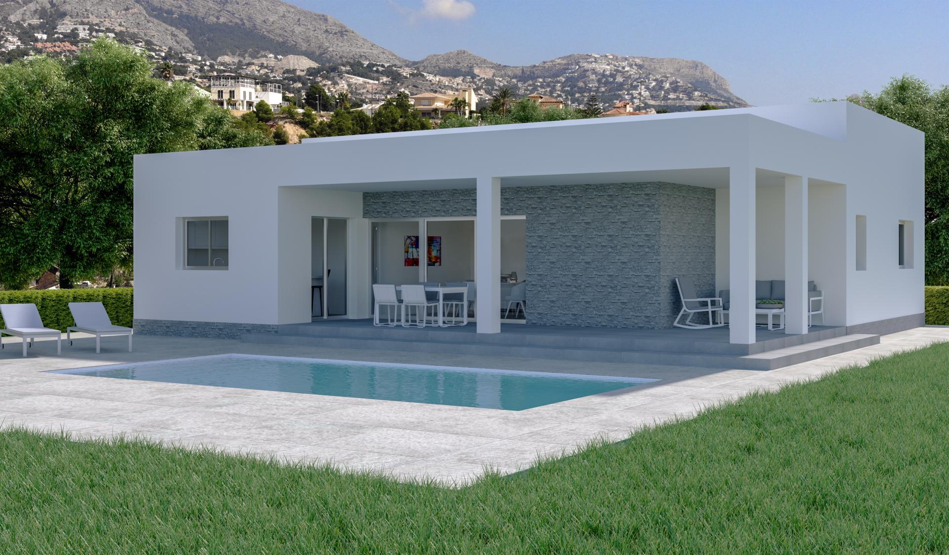Villa bouwen op maat gelegen te Hondon de las Nieves aan de Costa Blanca zuid in Spanje. Villa bouwen op maat voorzien van 3 Slaapkamers en 2 Badkamers, optioneel zwembad en parkeerplaats op eigen perceel inbegrepen. Nieuwe villa op plan, villa “Valle”.