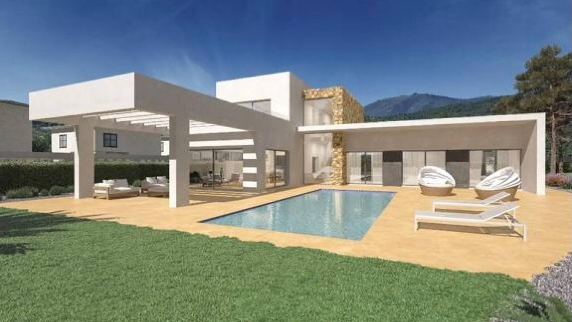 Deze nieuwe villa in aanbouw is gebouwd nabij Aspe en bestaat uit 227m2 bebouwde oppervlakte op een prachtig perceel van meer dan 10.000m2 (3.500 m2 omheind) met panoramisch uitzicht.